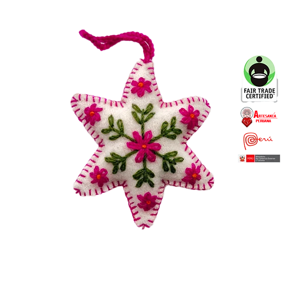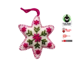 Adorno Navideno Estrella Blanca Lana Bordada de Comercio Justo Hecho
